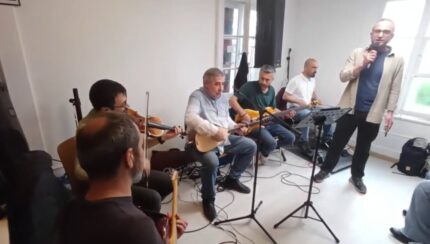 Açılışın coşkusunu doruğa çıkaran en önemli anlardan biri de müzik dinletisi oldu. Bağlama, keman ve gitarlar eşliğinde icra edilen ezgiler, salonun ruhunu birleştirdi. Özellikle dört kadın solistin ve diğer müzisyen arkadaşlarımızın birlikte seslendirdiği güçlü türküler, yürekleri ısıtan bir atmosfer yaratarak salonun coşkusunu katladı. Kadın ve erkek yoldaşların omuz omuza yükselttiği bu kültürel ses, mücadelenin estetik ve birleştirici gücünü bir kez daha ortaya koydu.